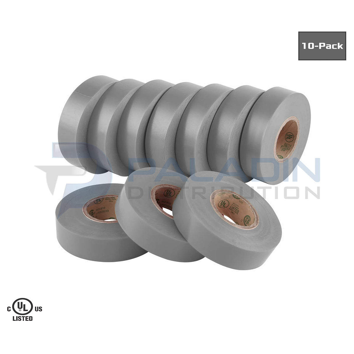 Electrical Tape PVC UL Listed – 3/4″ x 60′ FT – Gray – (10 Pack)