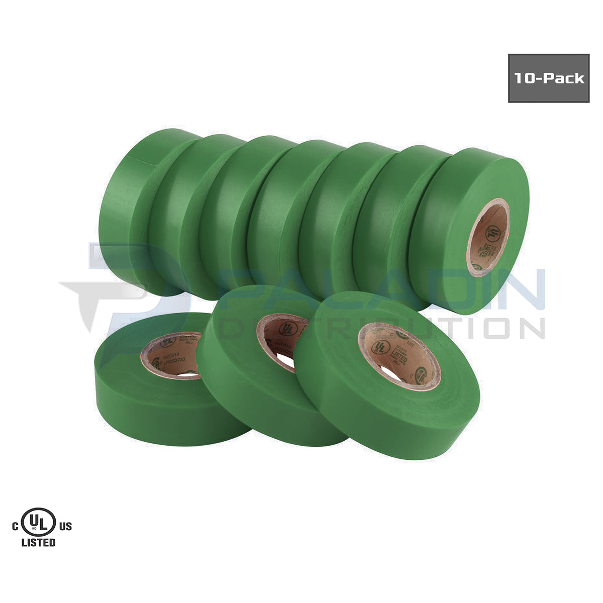 Electrical Tape PVC UL Listed – 3/4″ x 60′ FT – Green – (10 Pack)