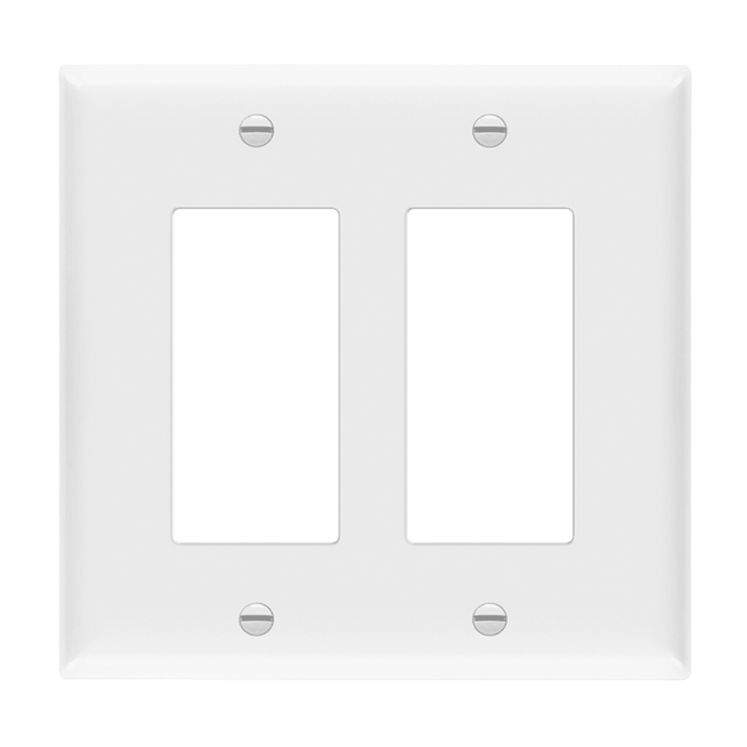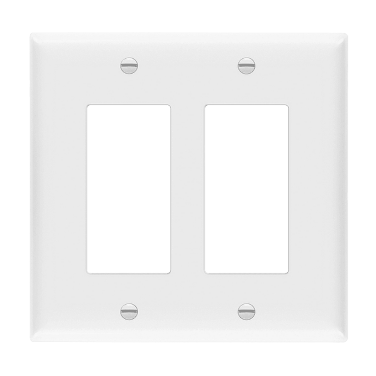 This is a 2-gang, mid-size Decorator/GFCI wall plate. Enerlites polycarbonate thermoplastic wall plates are manufactured to provide durability, flexibility, and resilience to bending and high impacts. They are also heat and fade-resistant to temperatures over 100 degrees, which protects them from fading and discoloration over time, and have a flammability rating of UL94, V2. Their smooth finish provides an attractive look and makes them easy to clean.
