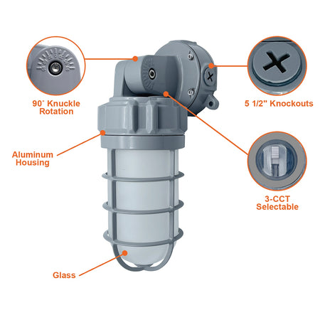 Envision LED-JJ-21W-TRI - LED Jelly Jar Vapor Tight Vertical / Horizontal - Gray