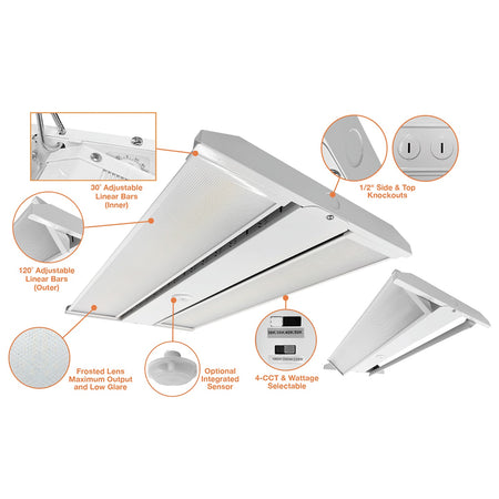 The EnVision C-Line LHB is our latest innovative linear high bay design. C-Line: "compact line" is a smaller body fixture but filled with the same power as our traditional 2' and 4' linear fixtures, and will not compensate your lighting layout! Pick and chooose during installation with 3 Power Options and 4 different CCT's all in one. Equipped with our Twist-C technology, you can always decide to add our Twist-C sensors before or after installation! • 3 Power + 4CCT Selectable with Twist-C Technology • 0-10V dimmable integrated driver • Available in 120-277V or 277-480V • Standard 90° Beam with optional 60° beam available • Angle adjustable up to 35°