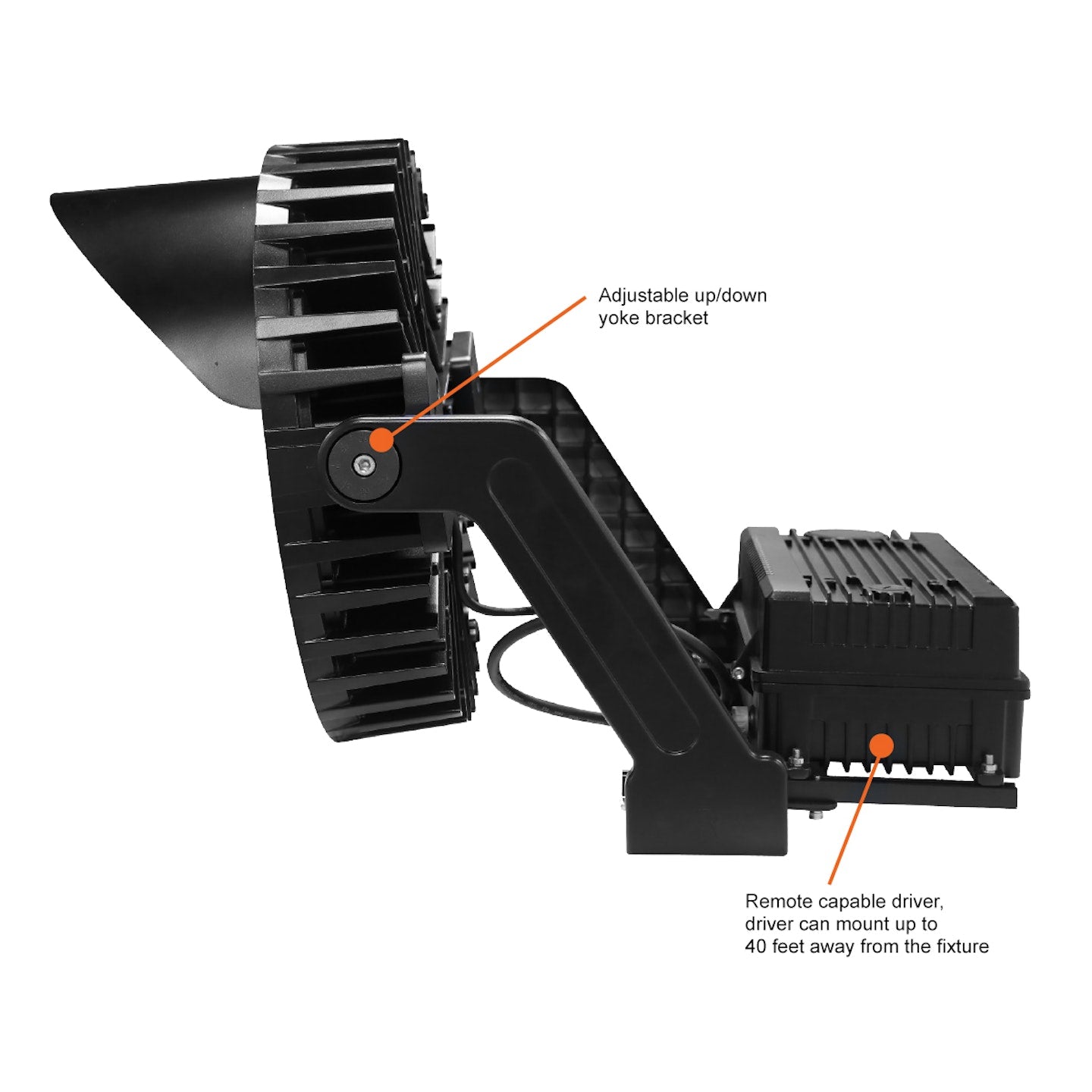 Light up your outdoor yard, arena, track, or more with The EnVision MAGNA Sports Lighting Series, a line of fixtures that offer high lm/w efficacy and a stunningly bright finish. Standard equipment includes a yoke bracket and shield. Our NEW MAGNA sports lighter features a remote capable driver allowing easy maintenance: mount the driver as far as 40' away from the fixture!